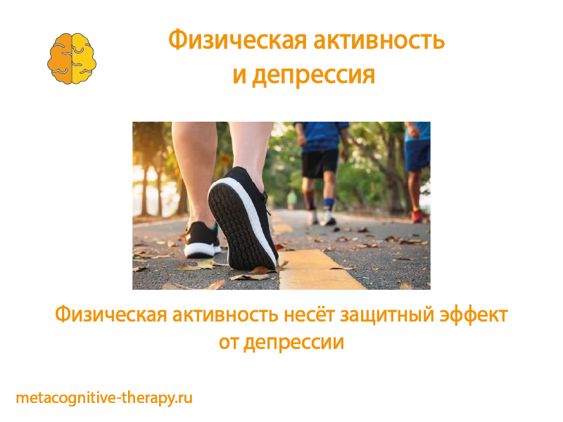 Кроме того, постепенное увеличение активности показало дополнительные преимущества: количество шагов выше 7500 связано с еще большим снижением симптомов депрессии. Проспективные когортные данные показали, что люди, совершающие 7000 и более шагов в день, имеют заметно меньший риск развития депрессии по сравнению с теми, кто делает меньше шагов. В частности, каждые дополнительные 1000 шагов в день соответствовали снижению риска депрессии на 9%.